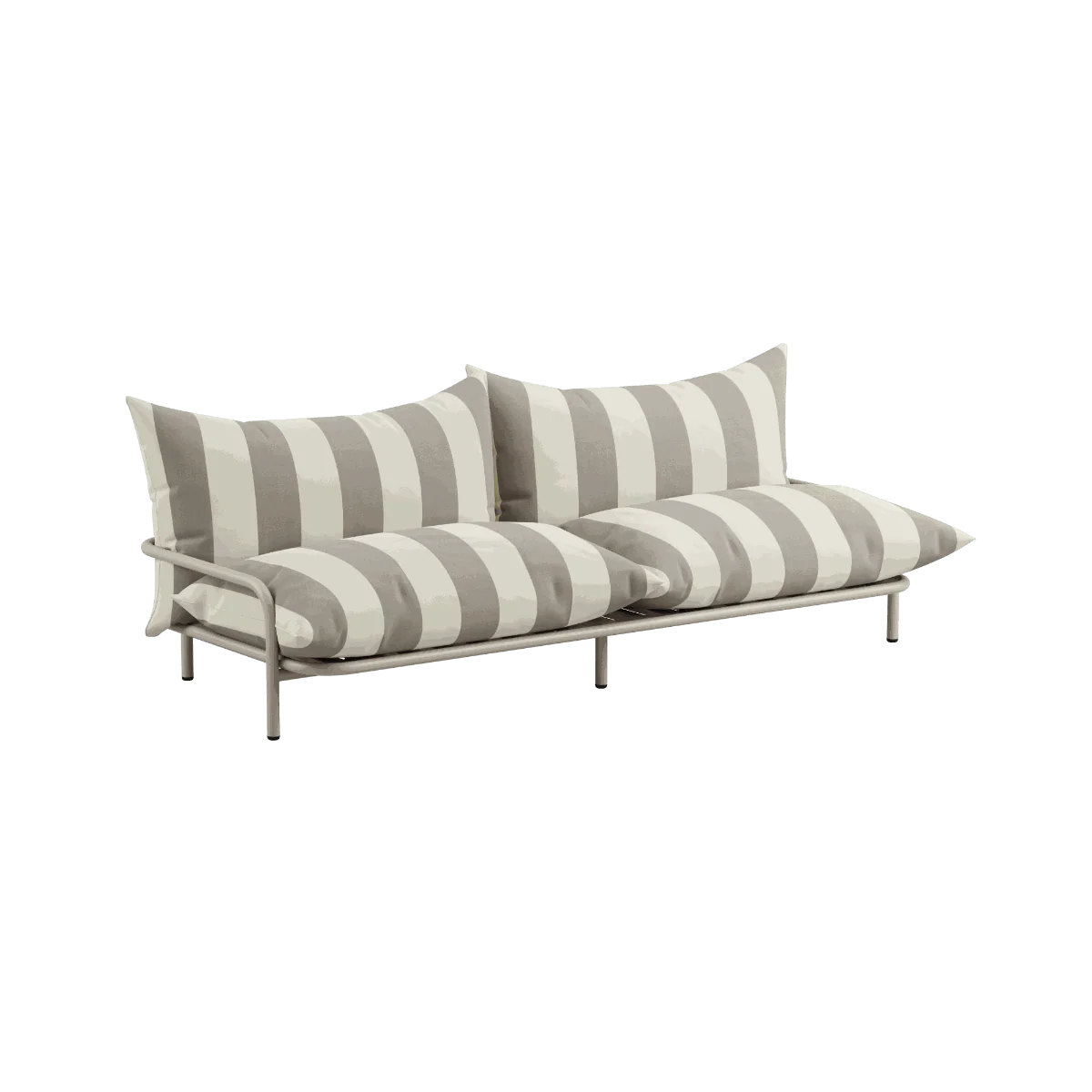 Stellet er fremstillet i pulverlakeret aluminium, som giver en let men stabil konstruktion, der er modstandsdygtig over for rust og skiftende vejrforhold. Sofaen er derfor velegnet til helårsbrug i uderummet og kræver minimal vedligeholdelse.
