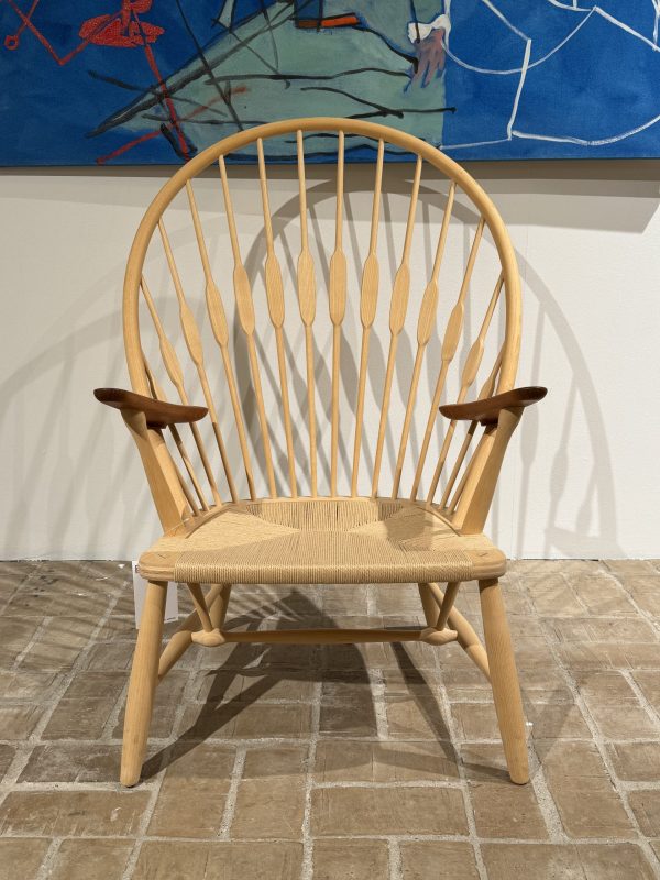 Skrivebordet er udført i sæbebehandlet eg, som giver et lyst, naturligt udtryk, og de to integrerede skuffer er diskret indarbejdet i designet, så funktionaliteten aldrig forstyrrer helheden. PP571 fremstår både stramt og skulpturelt – et arbejdsbord, der er lige så meget et møbel som et arkitektonisk statement.