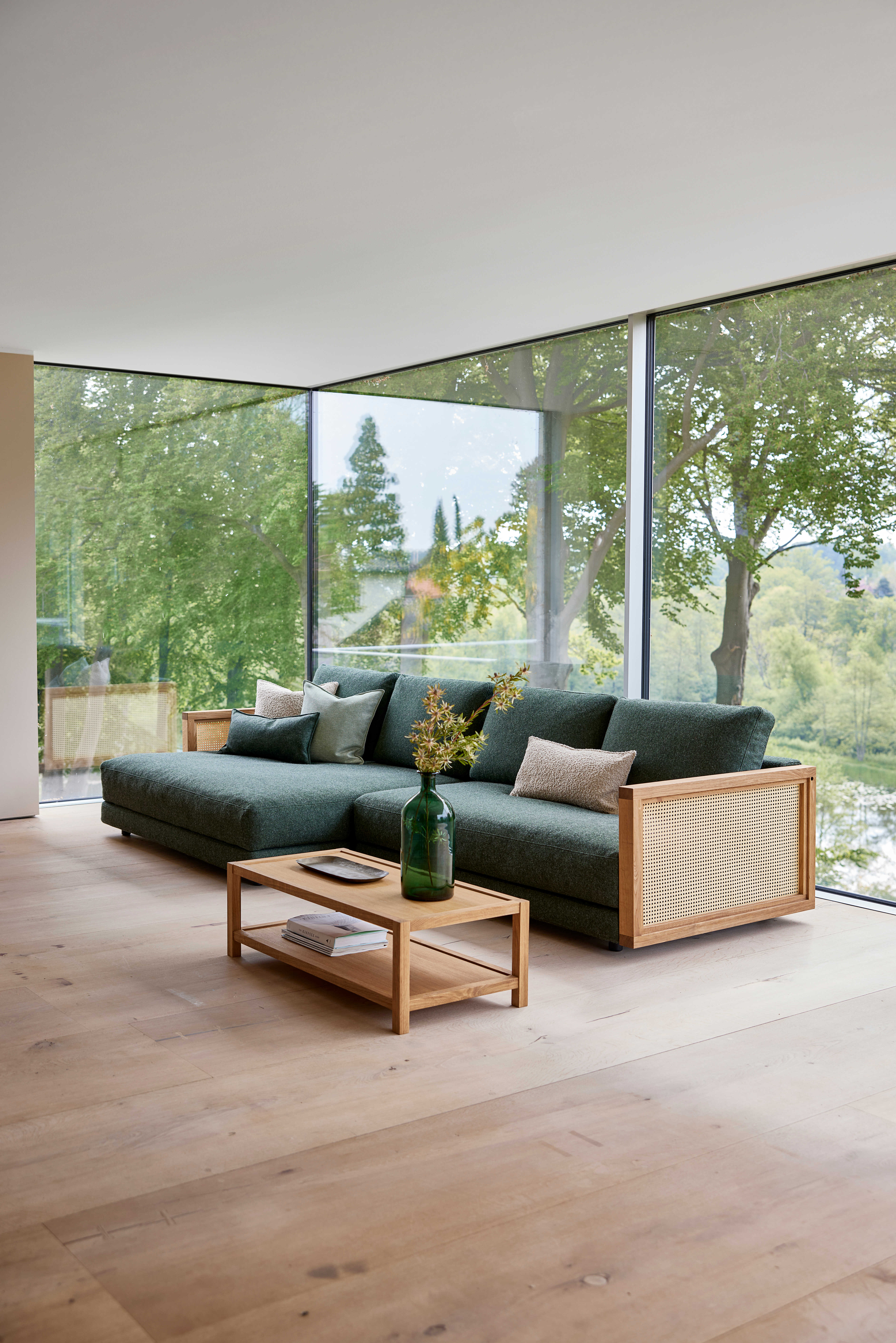 Serien består af fleksible moduler, der kan kombineres på utallige måder, så du kan skabe præcis den sofa, der passer til dit hjem og din livsstil. Polstringen i Cane-line’s eksklusive stof er både slidstærk, blød og indbydende – ideel til hverdagsbrug.