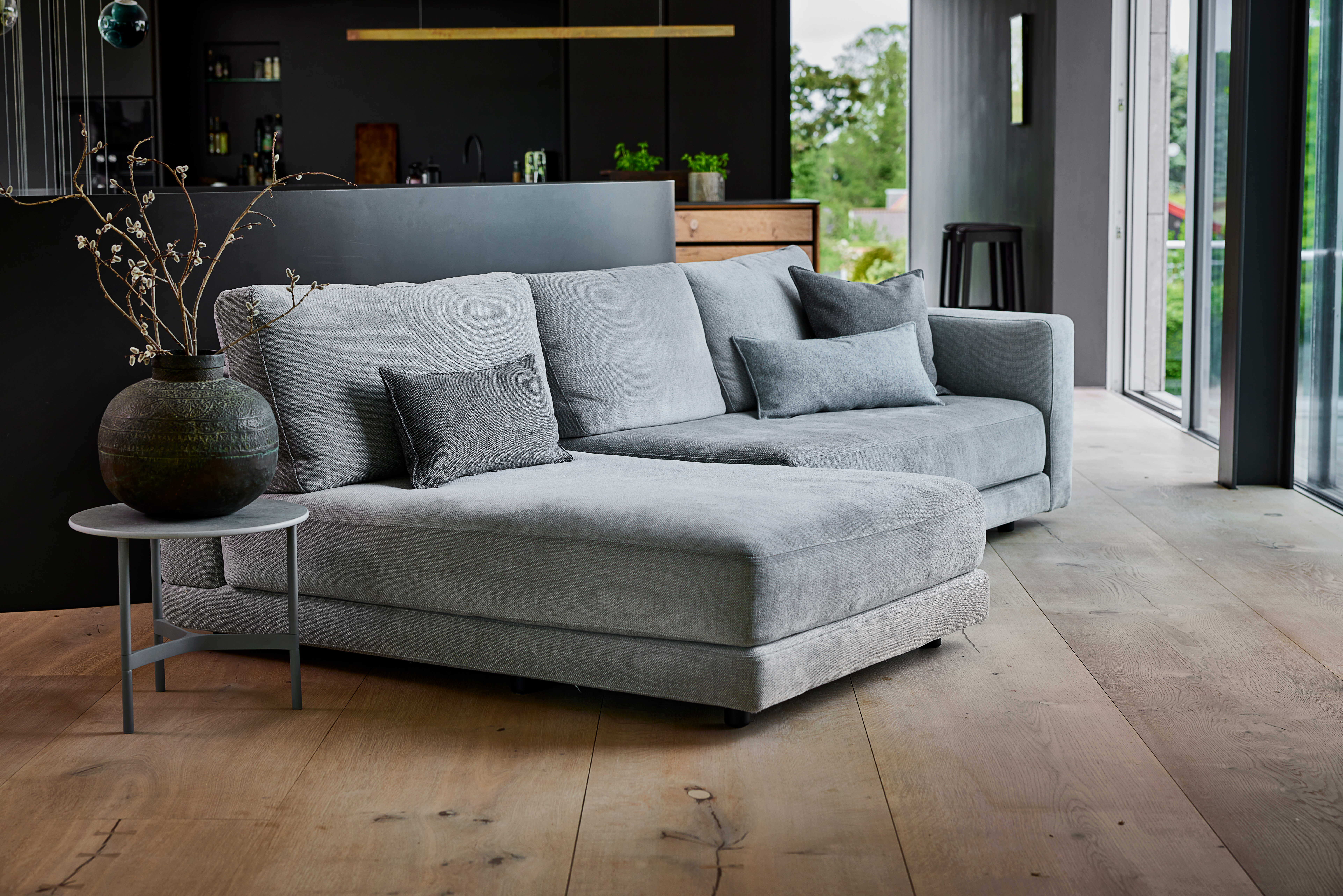 Med sit enkle, boxy udtryk og markante armlæn udstråler Scale ro og balance. De fyldige puder med dunfyld giver samtidig en luksuriøs siddeoplevelse, som gør sofaen lige så behagelig, som den er smuk at se på.