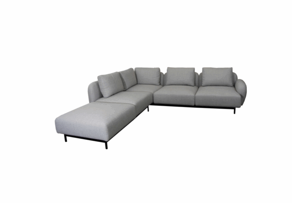 Designet er lavt, dybt og imødekommende, med bløde former og fyldige dunpuder, der indbyder til total afslapning. De markante armlæn og sofaens boxy silhuet giver et moderne, afbalanceret udtryk, mens de eksklusive Cane-line materialer sikrer holdbarhed og en behagelig, blød overflade.