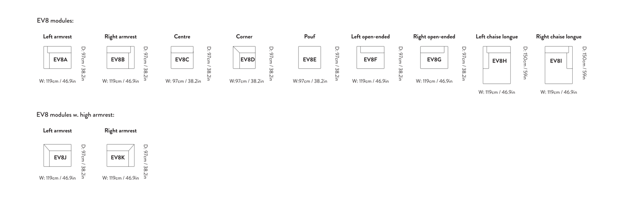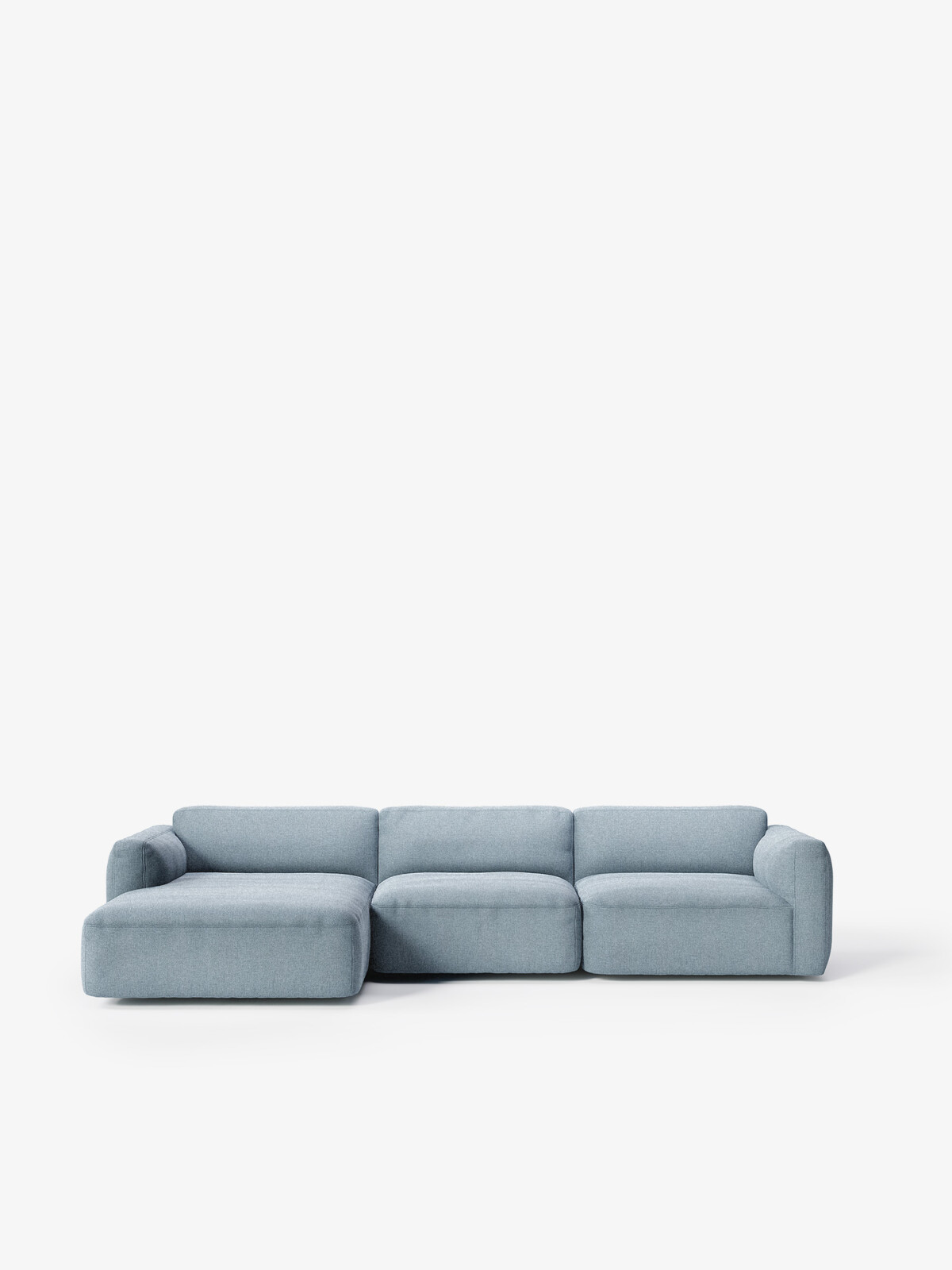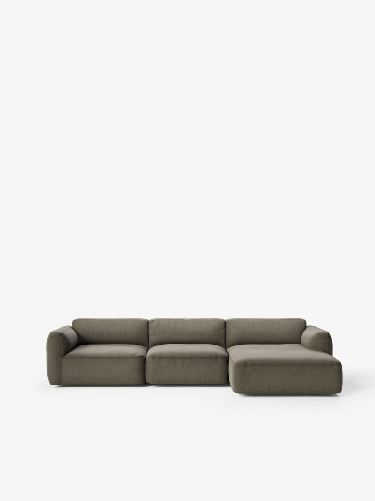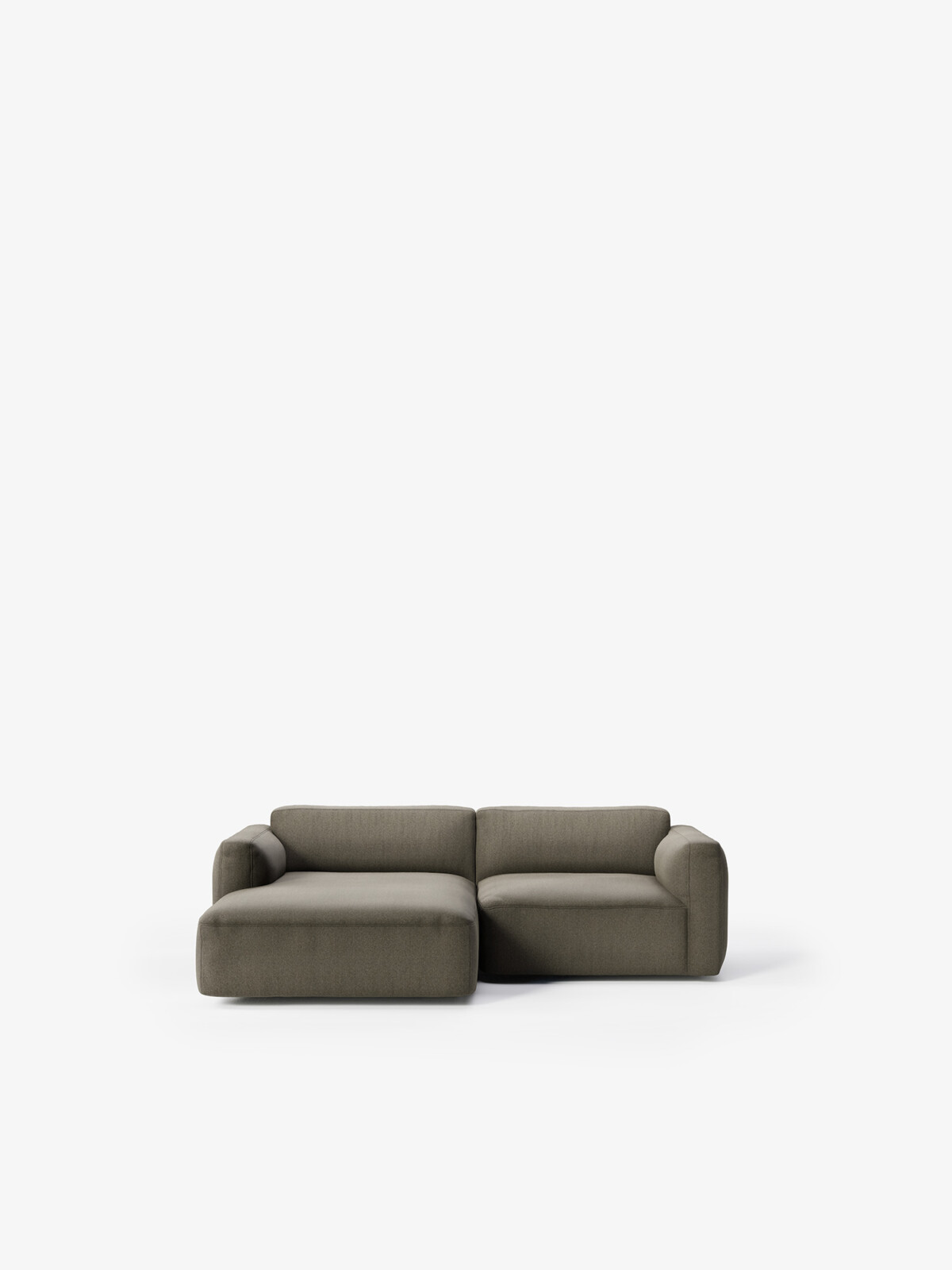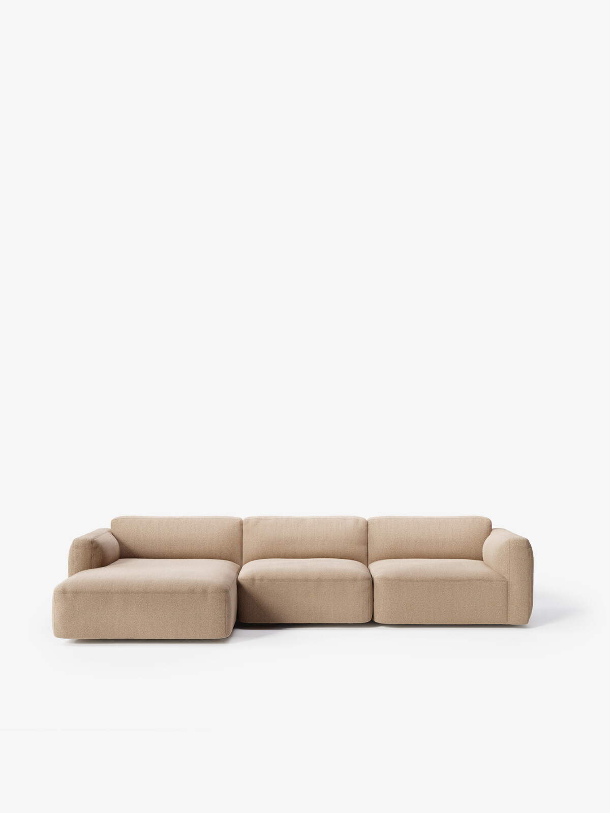 Develius Mellow består af separate moduler, der let forbindes med diskrete metalbeslag. Det giver dig mulighed for at skabe præcis den opstilling, der passer til dit hjem – fra kompakte loungemiljøer til store, åbne sofaarrangementer.