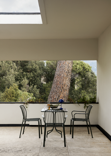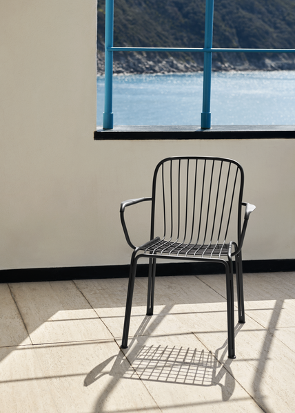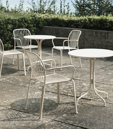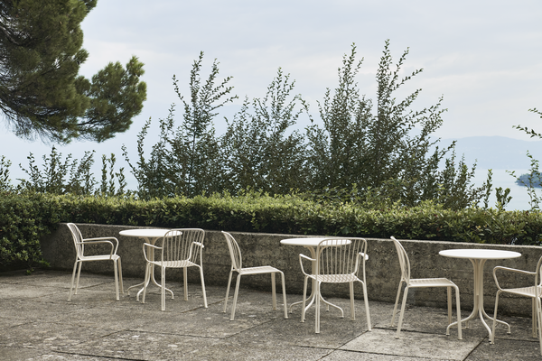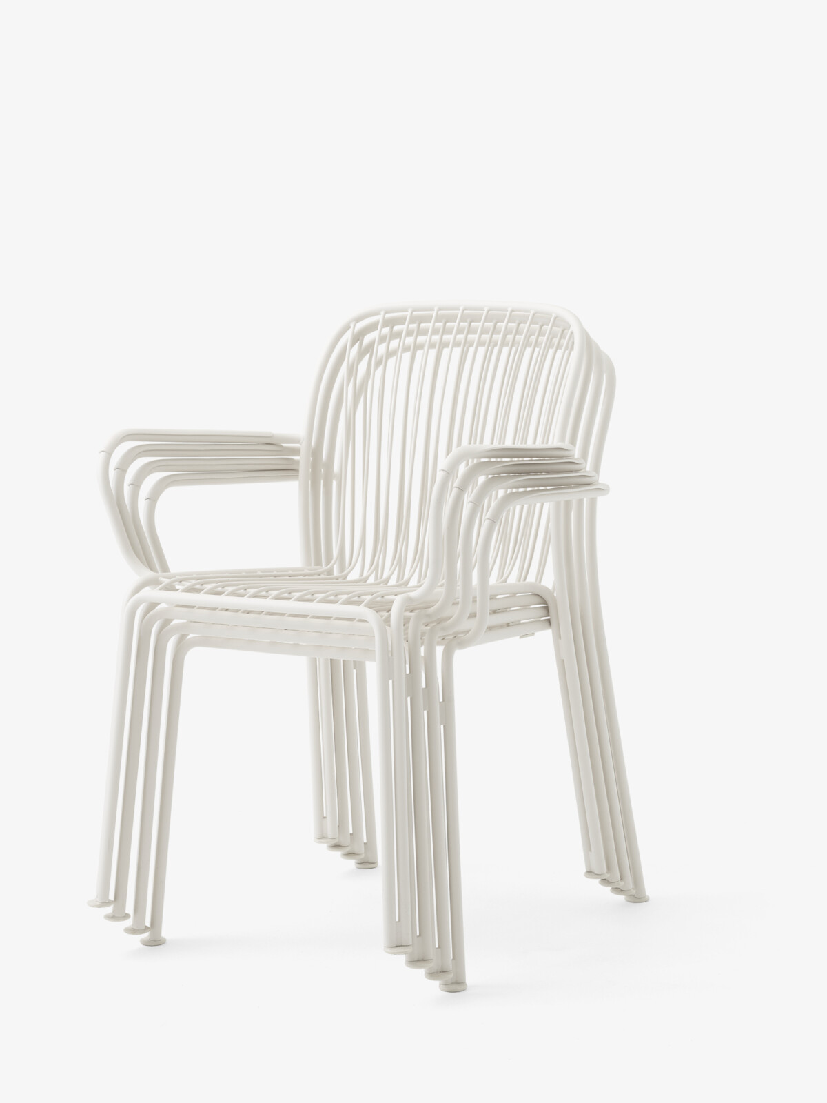 Armlænene tilfører ekstra komfort og gør stolen ideel til længere middage og afslappede stunder. Den er desuden stabelbar, hvilket gør den nem at opbevare og fleksibel i brug – både i private uderum og i mere urbane miljøer.