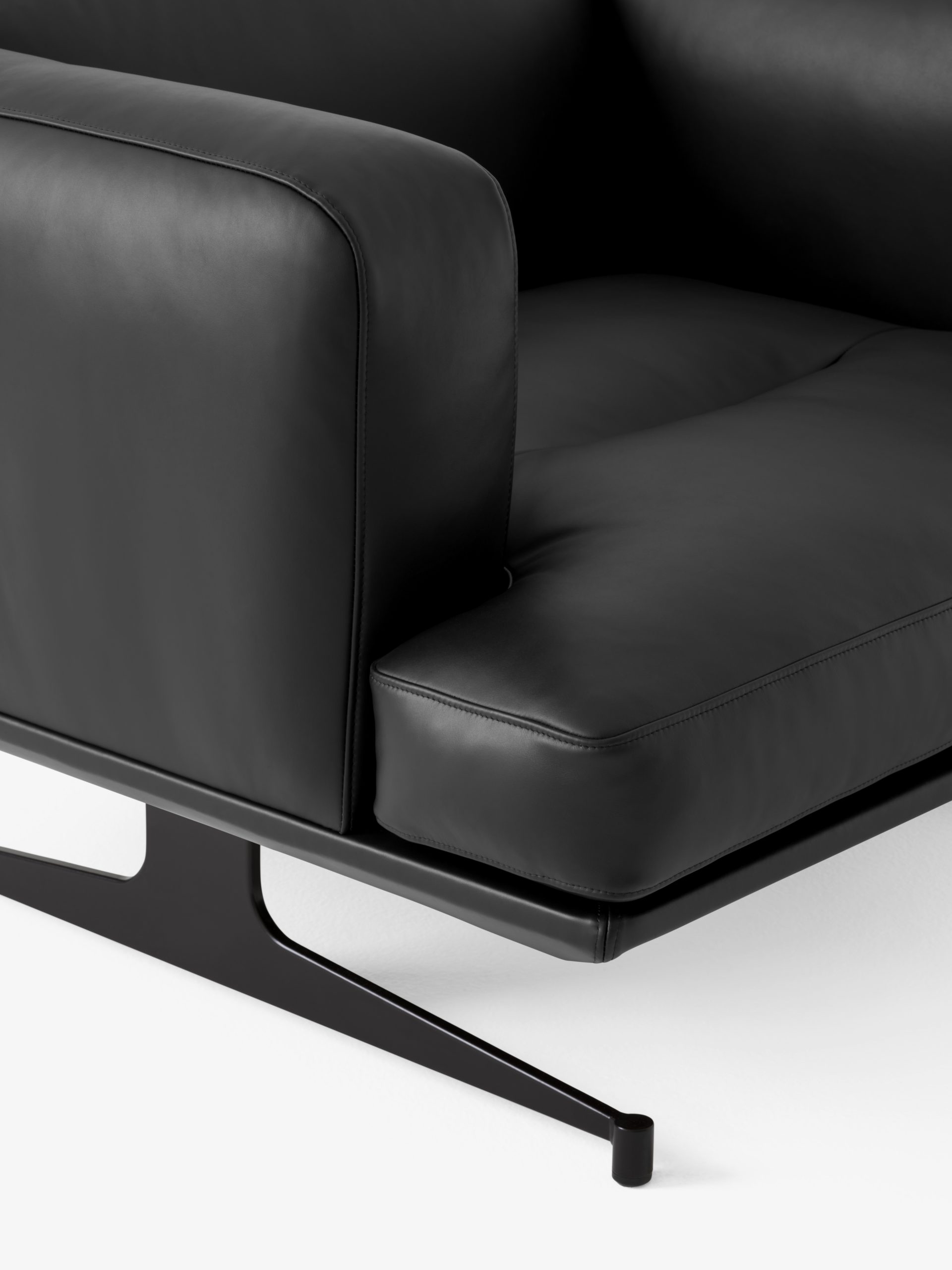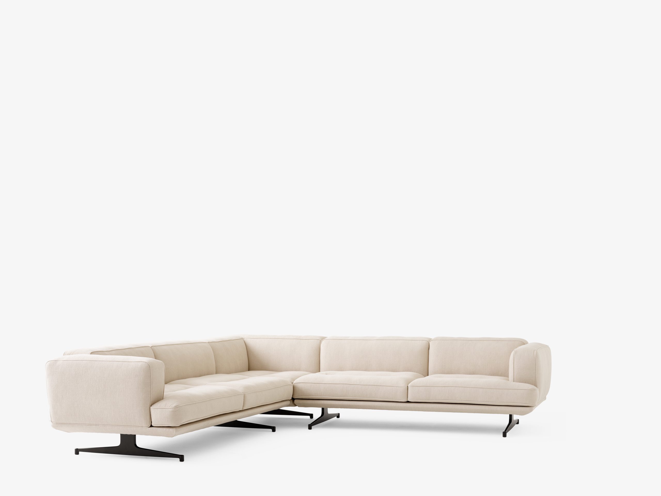 Torbjørn Anderssen og Espen Voll ønskede at skabe en sofa, der kunne tilbyde maksimal komfort inden for en klart defineret arkitektonisk ramme. Med denne vision udviklede de Inland – en lav, dyb sofa med høje armlæn og en base af varmt, sort stål, der får den til at fremstå svævende.
