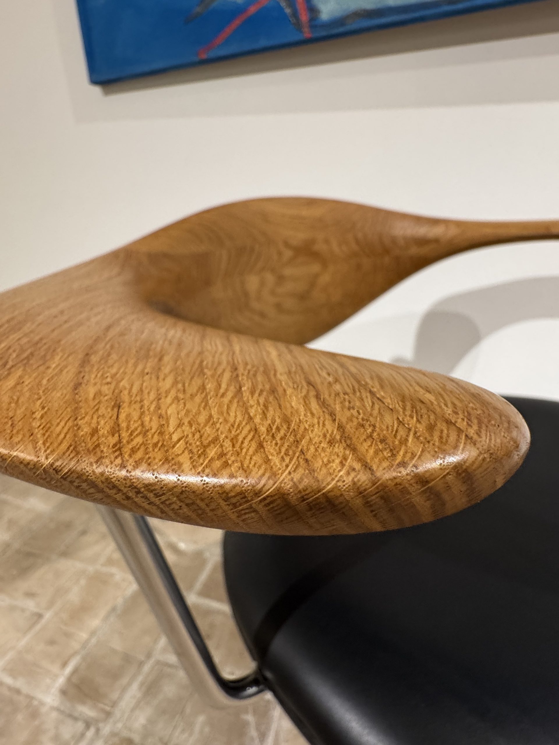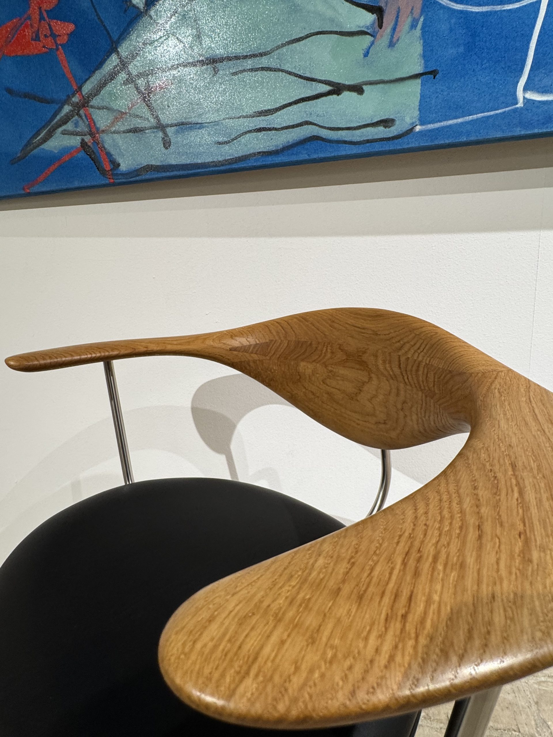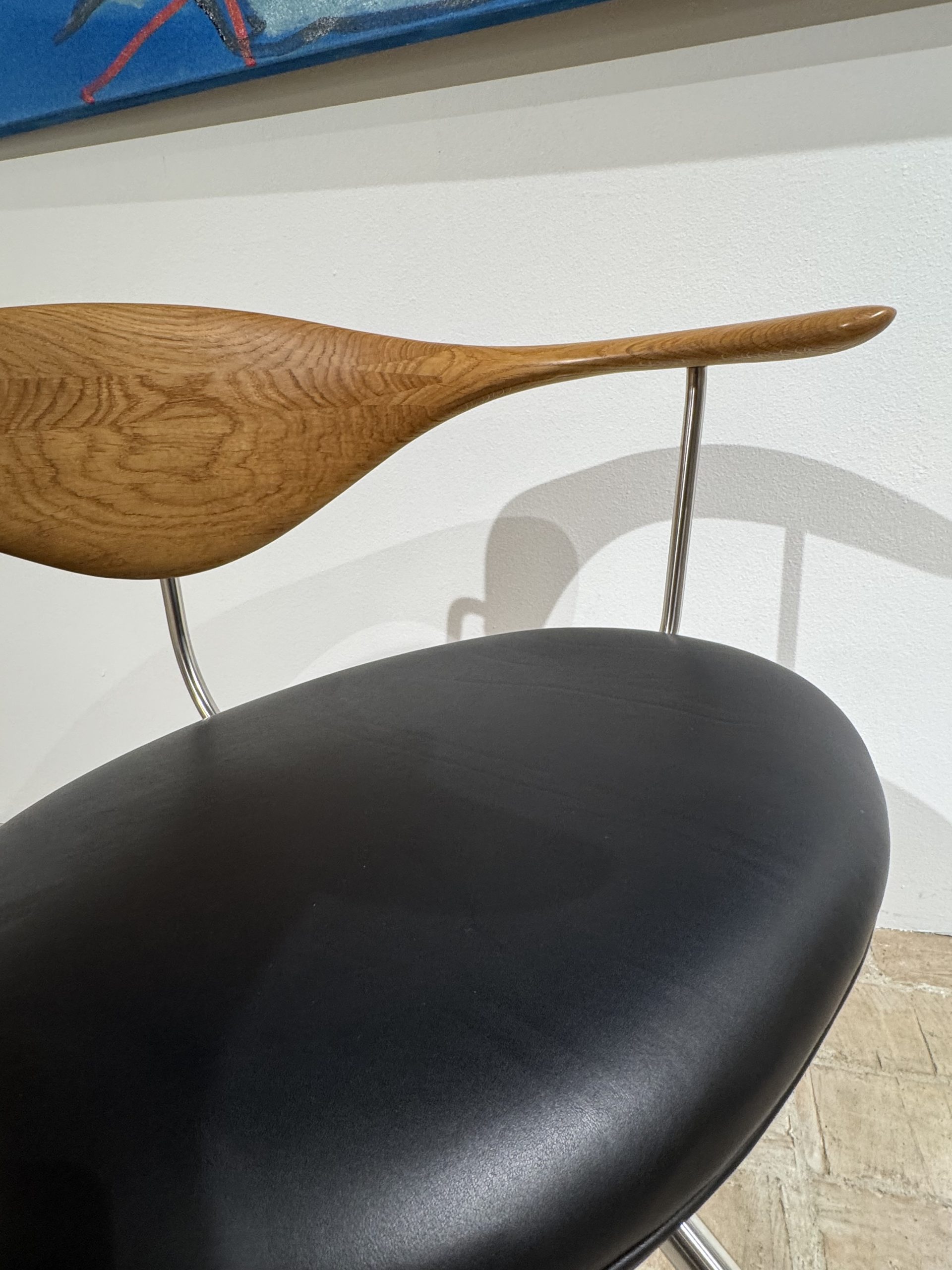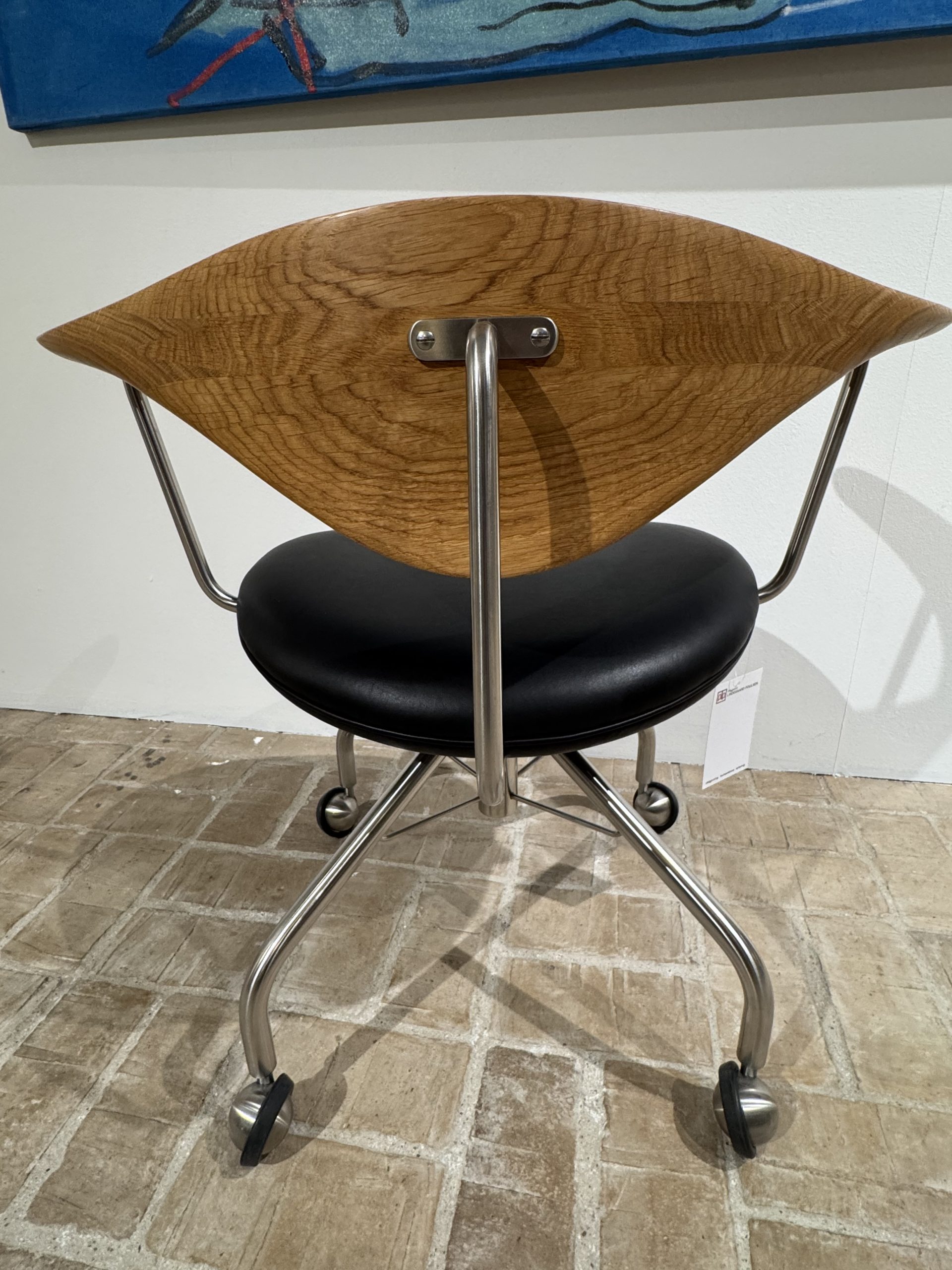 Udstillingsmodel af Kontordrejestolen PP502, designet af Hans J. Wegner i 1955 – en kompromisløs arbejdsstol, hvor komfort, ergonomi og håndværk er sat i højsædet. Stolen er skabt som et præcist og funktionelt redskab til kontoret, men fremstår samtidig som et markant og skulpturelt møbel.