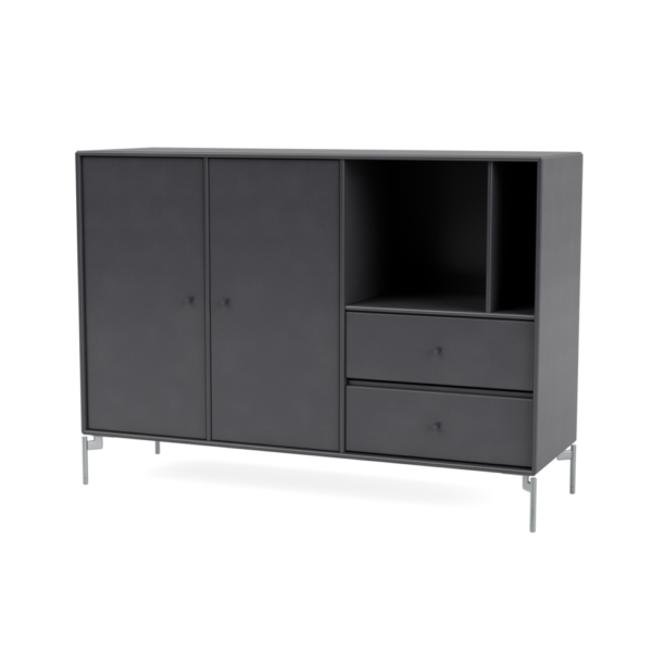 Montana Mega-serien gør det enkelt at vælge. Skænkens konfiguration er fastlagt, dybden er 38 cm, og designet er, som du ser det. Skænken fås kun med ben eller sokkel. Til gengæld kan du vælge mellem 41 miljøvenlige lakfarver.