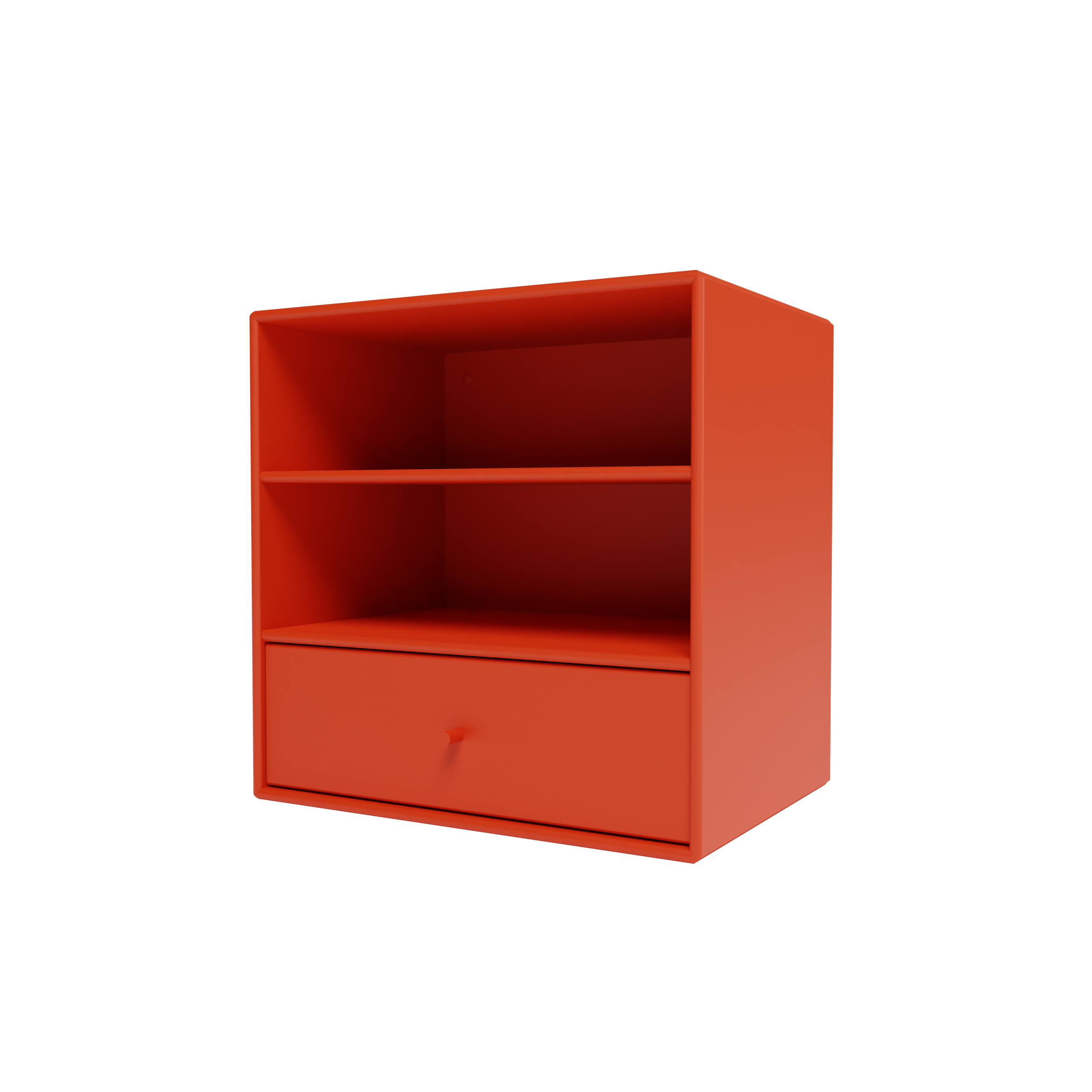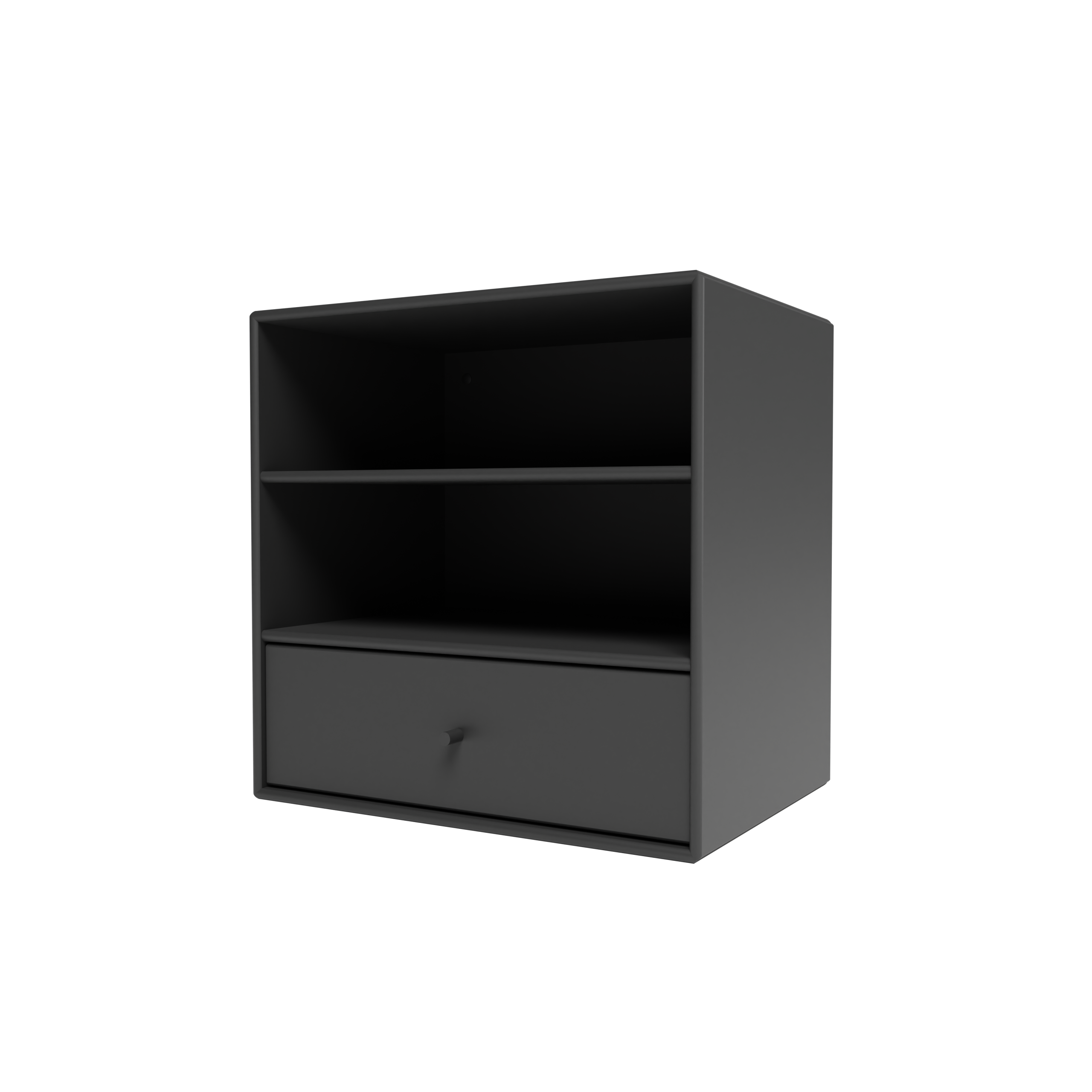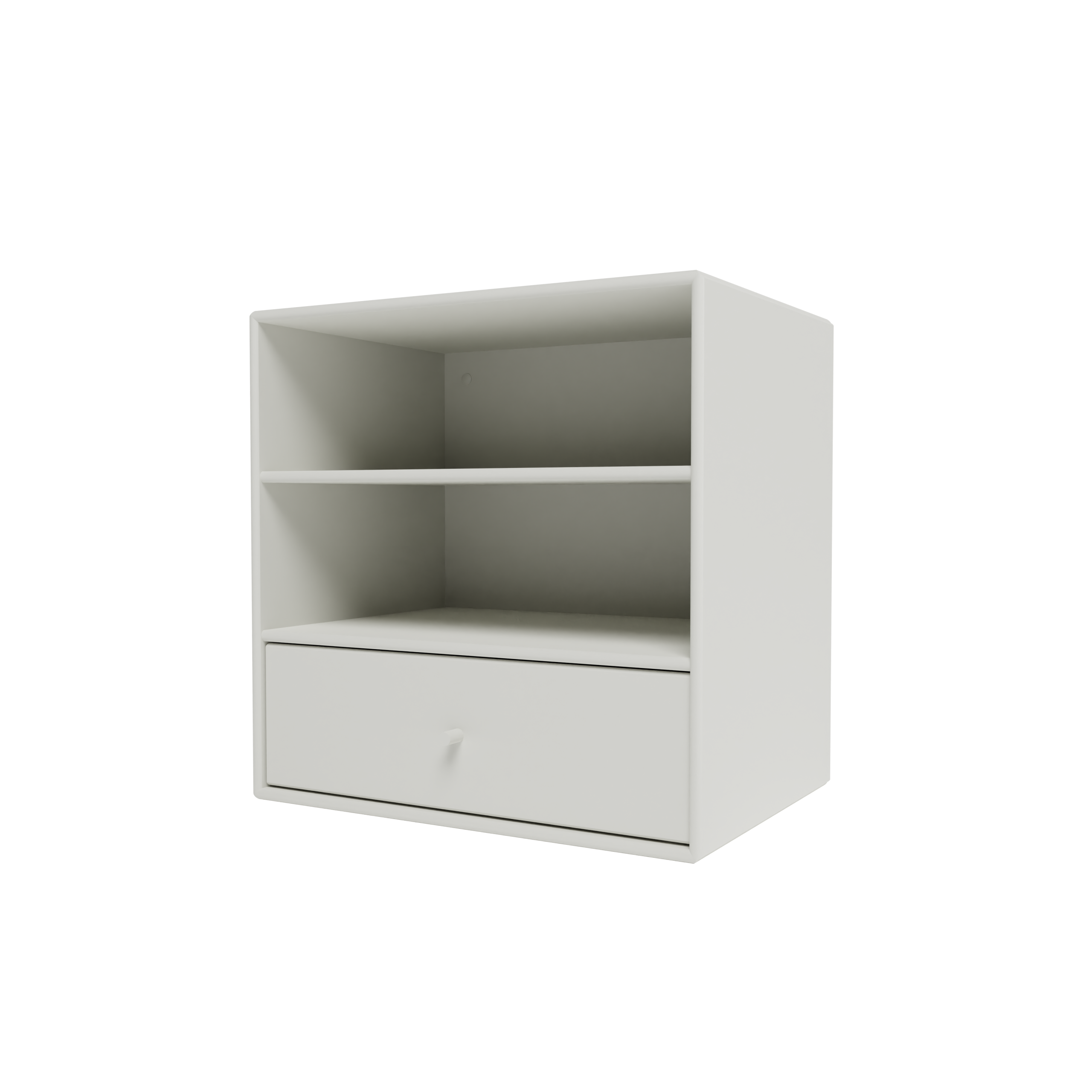 Dette Montana Mini modul kombinerer åbne hylder med en praktisk skuffebakke, der giver dig fleksibel opbevaring. Skuffebakken hviler på hylden nedenunder og kan nemt flyttes rundt mellem de tre rum, så du kan tilpasse modulet efter dine behov.
