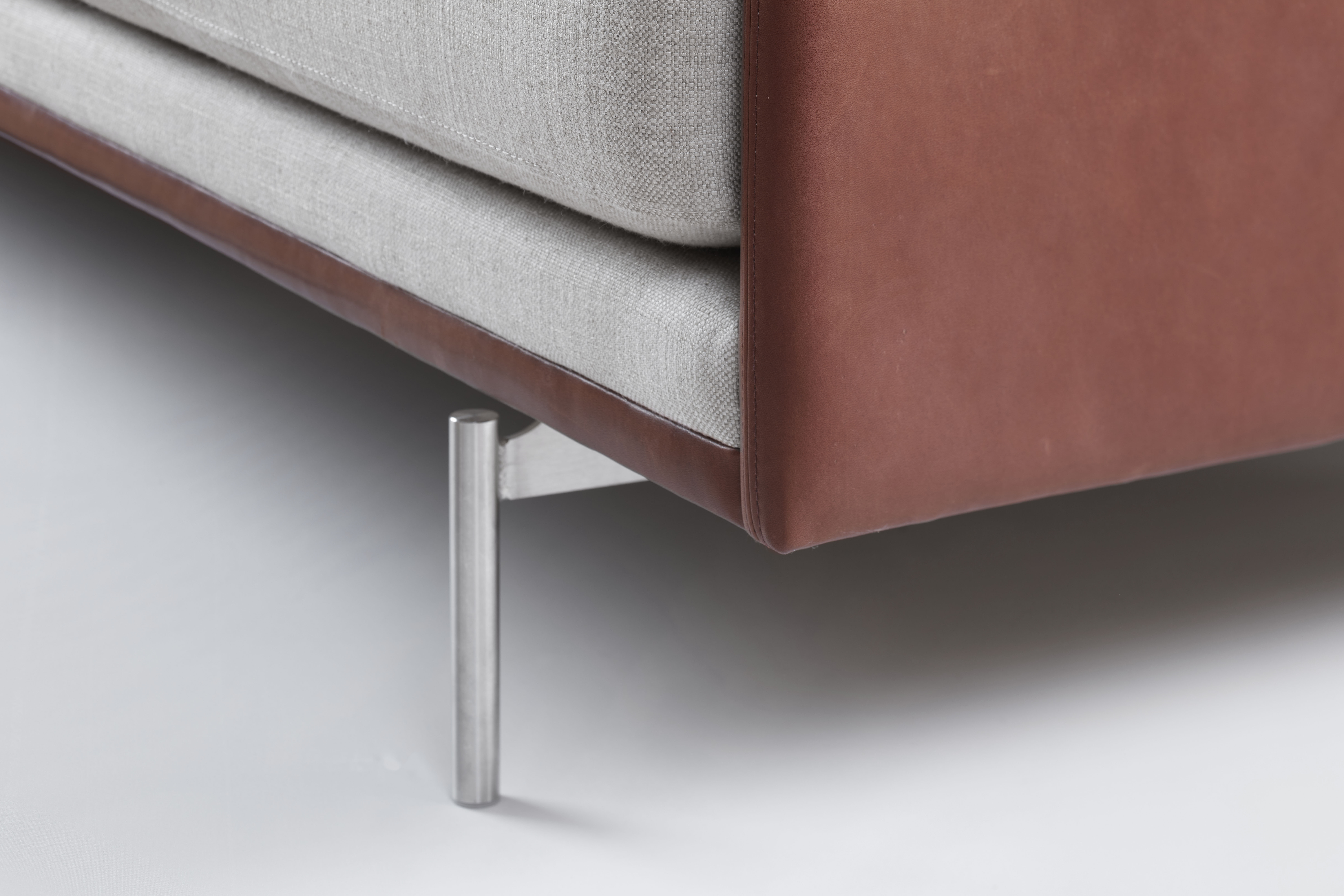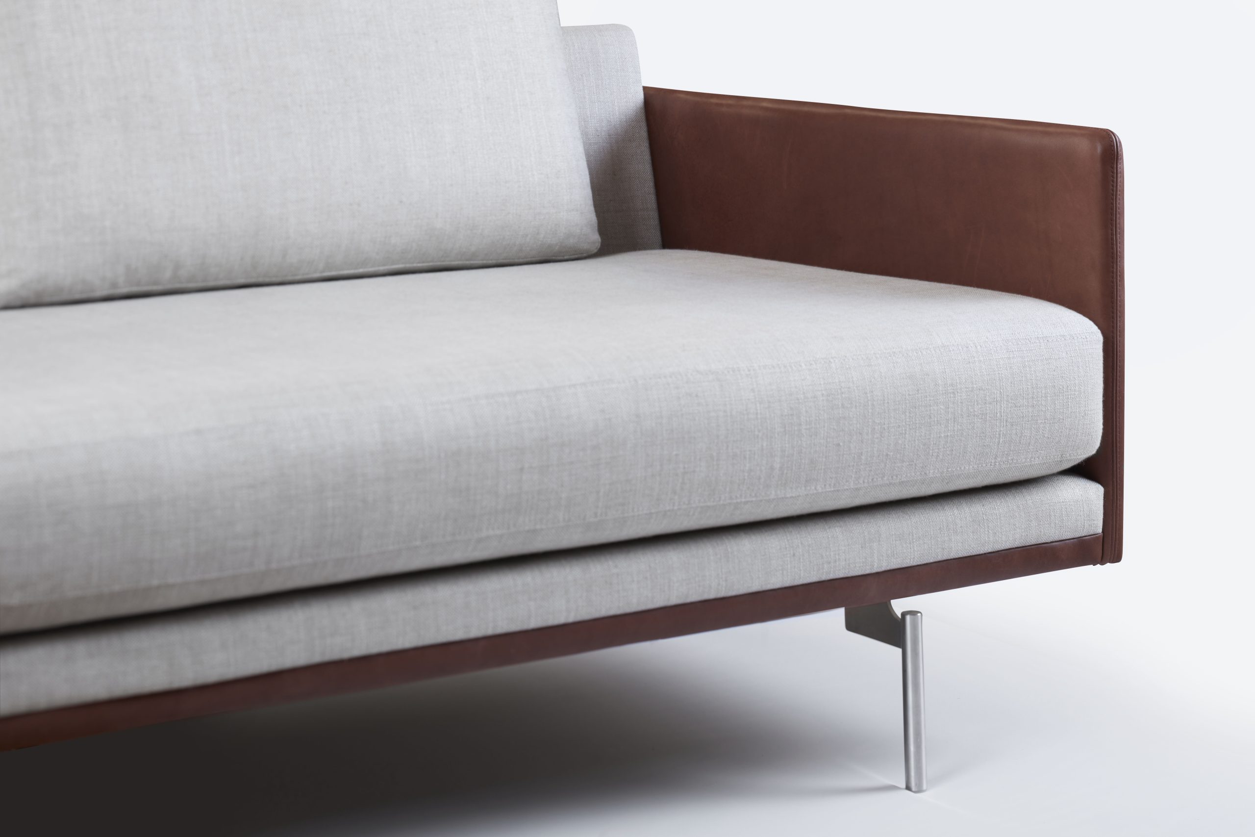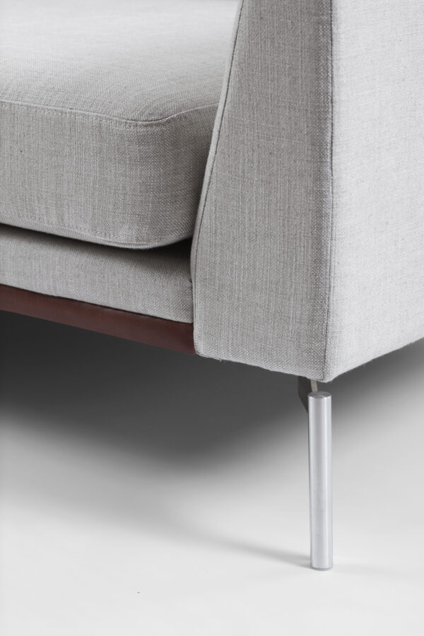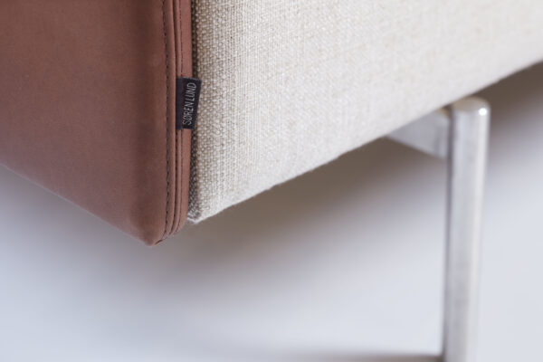 SL 616-serien er ikke en standardløsning, men et fleksibelt program, der tilpasses efter dine specifikke behov. For eksempel kan den smalle forkant på sæderammen monteres med læder (mod tillæg), ligesom den smalle arm i system A også kan fås i læder, mens resten af sofaen er i stof.