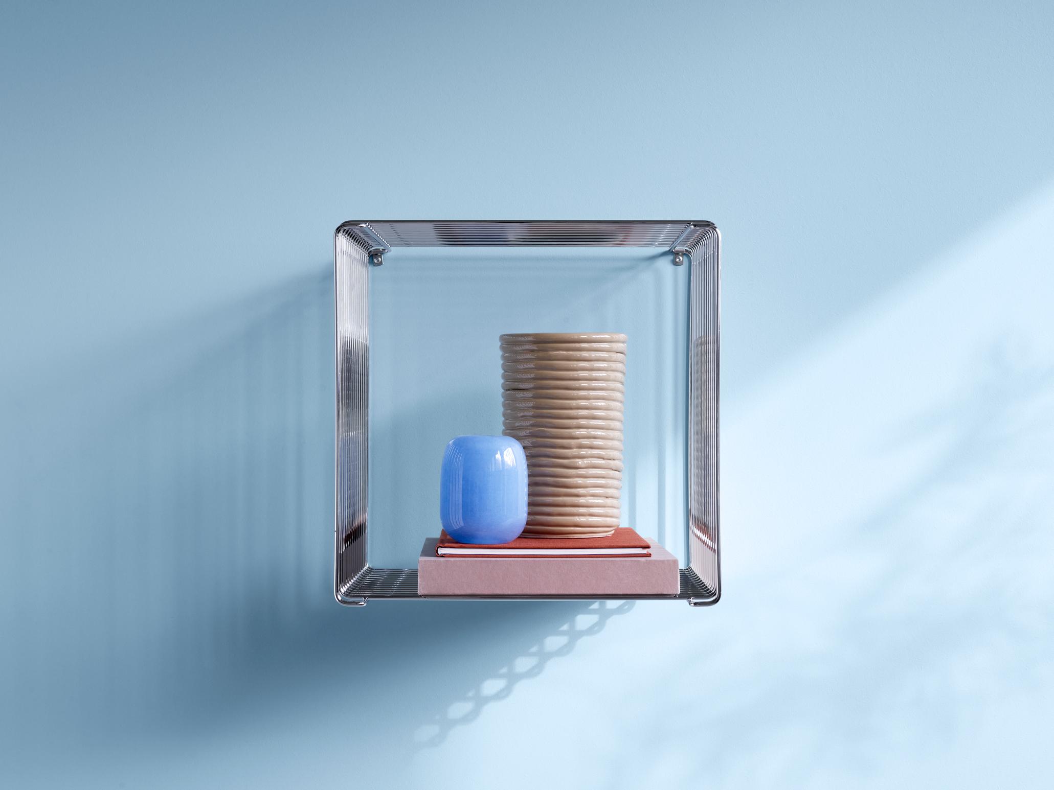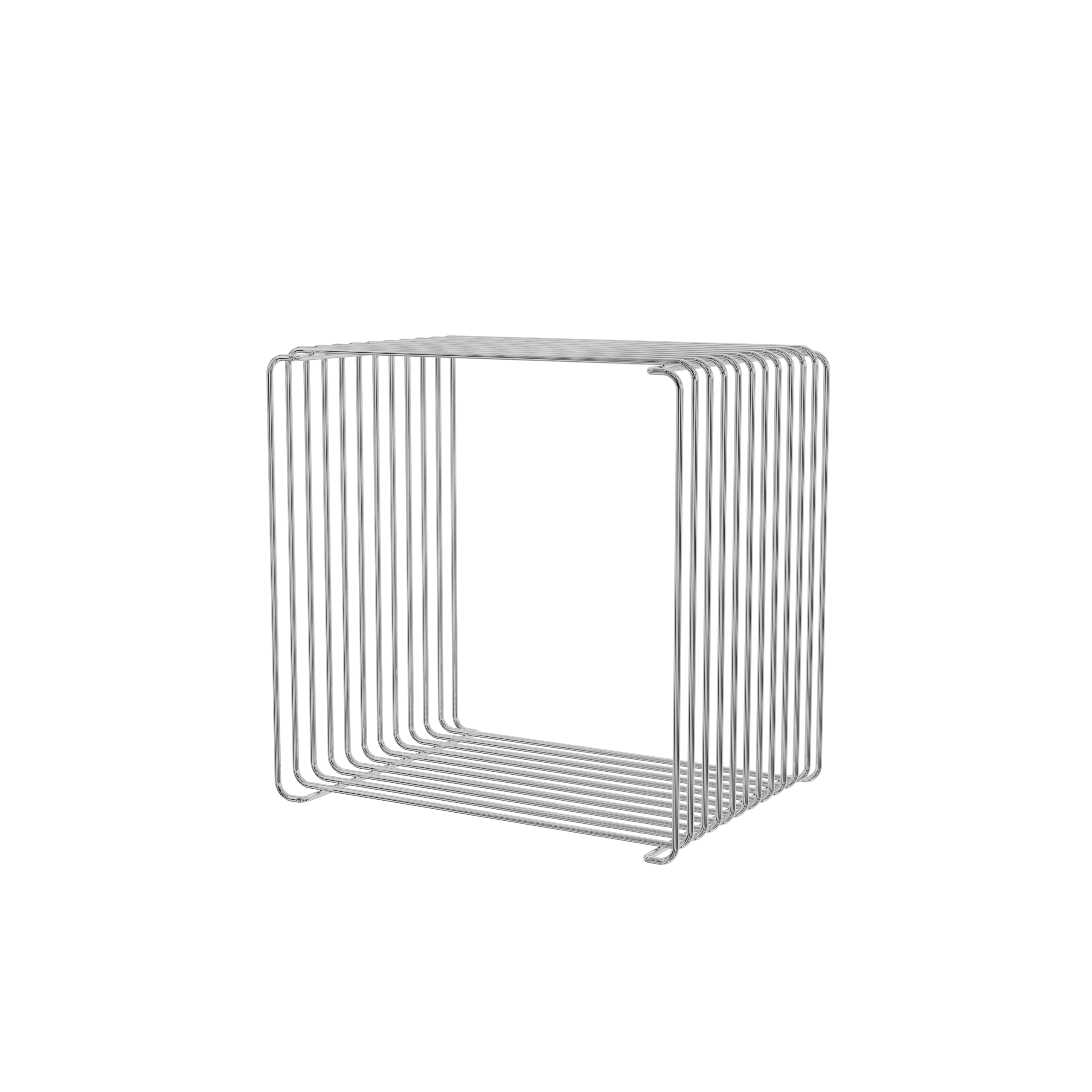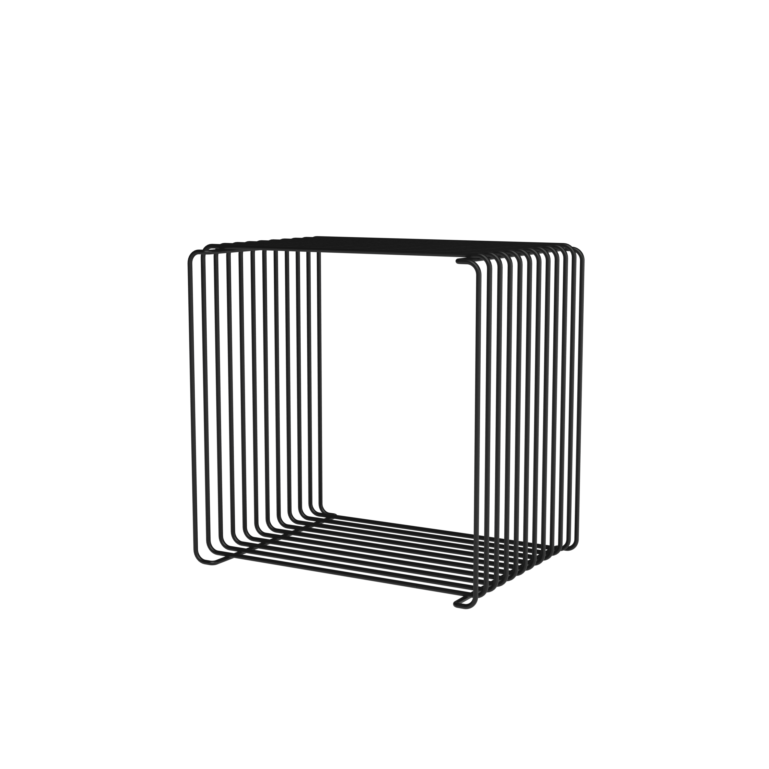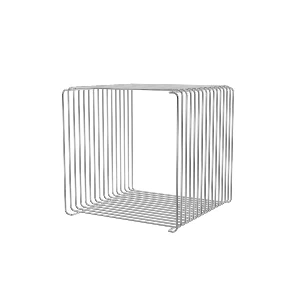 Med en dybde på 25,7 cm er denne version ideel til mindre rum, smalle vægge eller som en let opbevaringsløsning ved siden af sofaen eller sengen. Den åbne trådkonstruktion giver et luftigt og transparent udtryk, samtidig med at modulet er solidt og funktionelt.