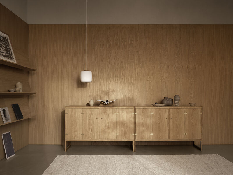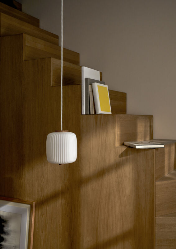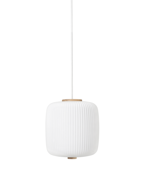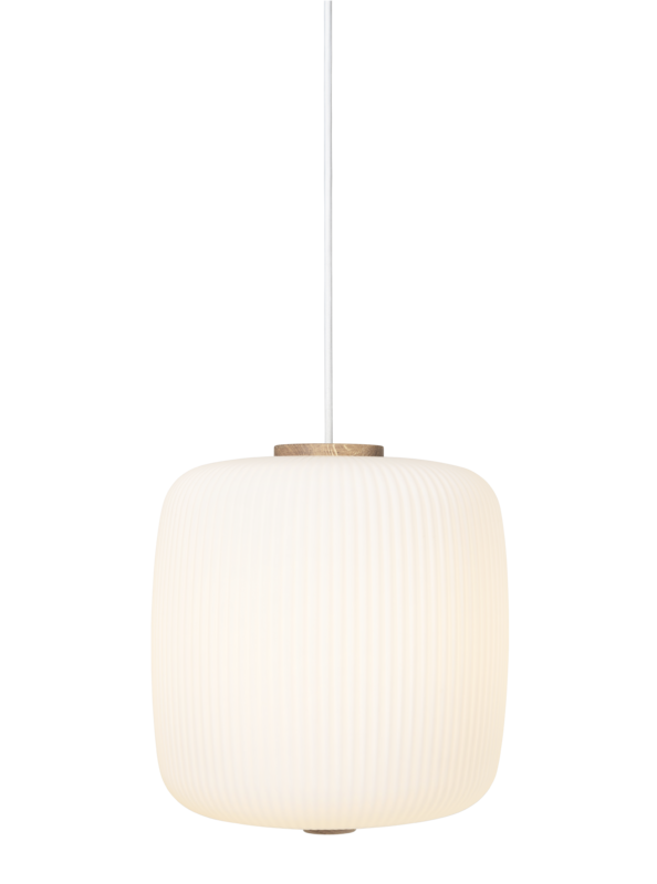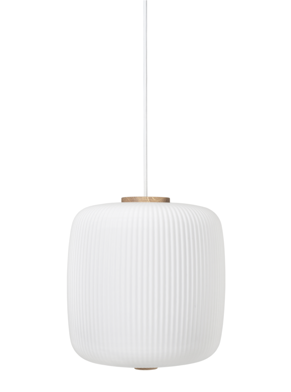 Pendlen har en blød, elliptisk form, der skaber et harmonisk lys og en raffineret silhuet over spisebordet, i entreen eller som en del af en smuk klynge. De hånddrejede egetræselementer er nøje forarbejdet og leder tankerne mod klassiske asiatiske lanterner – en hyldest til traditionelt håndværk i en moderne fortolkning.