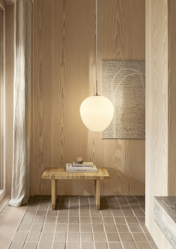 MT221 Tulip er resultatet af Marianne Tuxens visionære arbejde fra 2022, skabt i forbindelse med restaureringen af J.C. Jacobsens historiske villa – det nuværende Carlsberg Akademi. Pendlen blev oprindeligt designet til Pompejisalen, en imponerende vinterhave med klassiske søjler, og tilfører rummet et raffineret strejf af moderne skandinavisk elegance.
