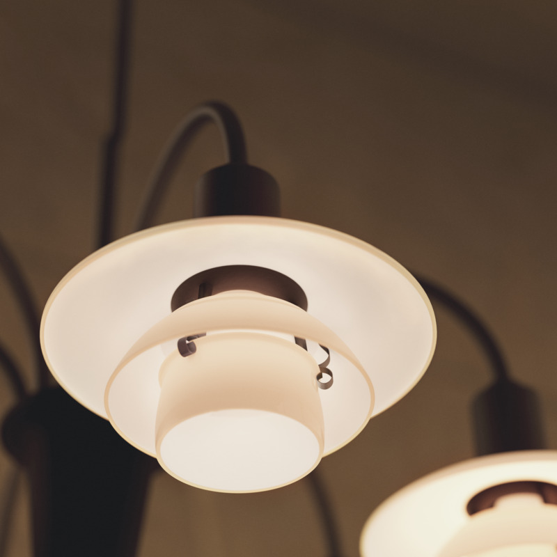 En ikonisk lysekrone oprindeligt designet i 1933, baseret på det innovative System PH fra 1926. Med sit bløde, organiske formsprog og karakteristiske buede arme står lysekronen som et skulpturelt midtpunkt i rummet – med både historisk tyngde og tidløs elegance.