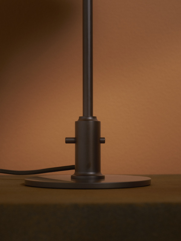 Stellet er udført i patineret messing, der understreger lampens klassiske og eksklusive udtryk. Lampen leveres med brun stofledning, som understøtter det historiske designudtryk, samt integreret afbryder direkte på lampen for nem og funktionel betjening.
