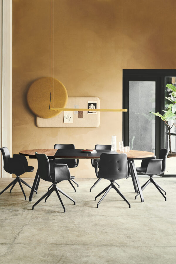 Primum Chair forener komfort, bæredygtighed og stil i en stol, der er skabt til at følge dig gennem hverdagens øjeblikke – fra lange middage til intense arbejdsdage. Det polstrede sæde og det fleksible ryglæn former sig naturligt efter din krop, så du kan sidde behageligt i timevis.