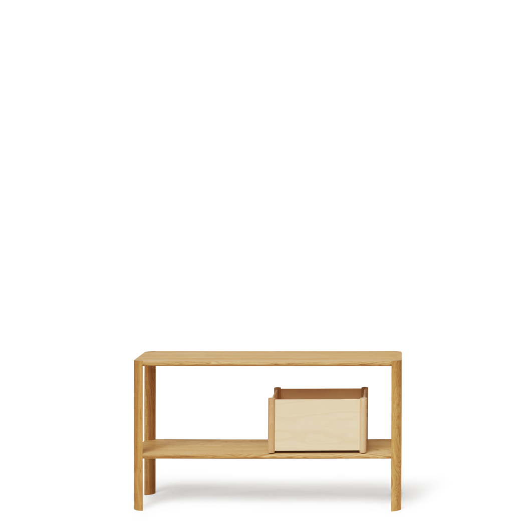 Leaf Shelf 1×2 fungerer perfekt som sidebord, natbord eller en lav udstillingshylde til bøger, planter eller personlige objekter.