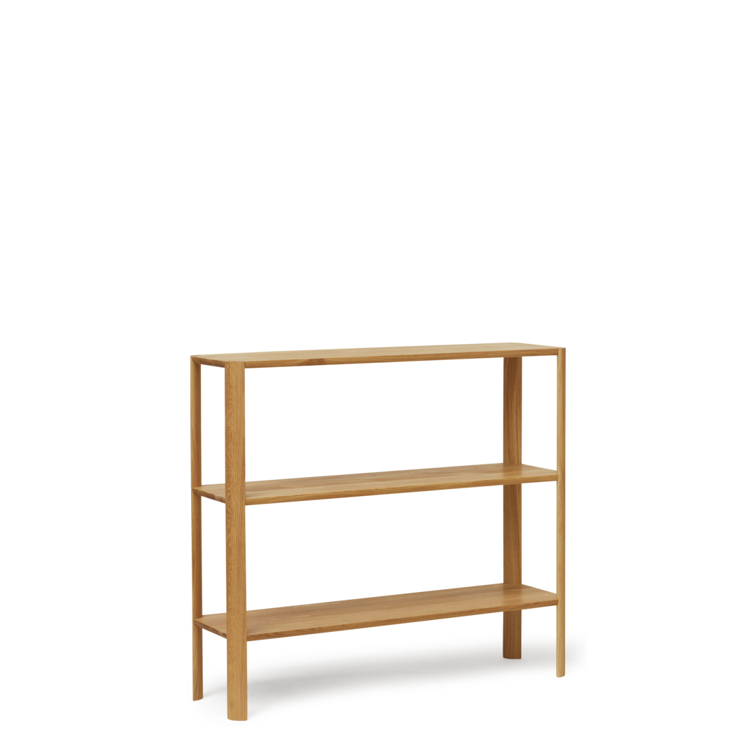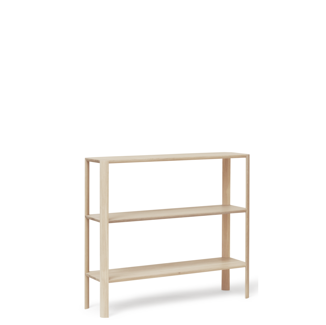 Leaf Shelf 1×3 er en elegant, lav reol, der forener skulpturel skønhed og praktisk funktionalitet. De karakteristiske bladformede ben giver reolen et organisk og raffineret udtryk, mens den lange, slanke profil gør den ideel som lav bogreol, skænk eller rumdeler.