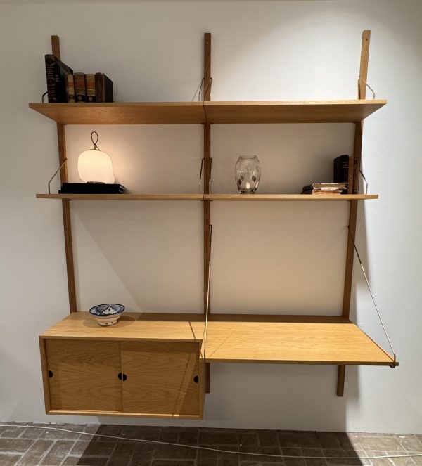 Elegant udstillingsmodel af dk3 Royal System, designet af Poul Cadovius – et ikonisk og fleksibelt reolsystem, der forener funktionalitet, dansk designhistorie og tidløs æstetik. Royal System er kendt for sit lette og modulære udtryk og passer perfekt ind i både stue, kontor og hjemmearbejdsplads.