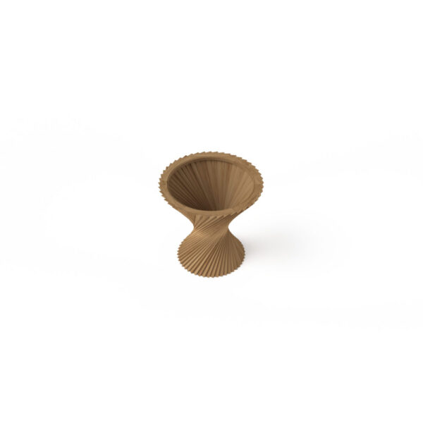 Inspirationen bag bordet var idéen om en “hyperboloide” udført i egetræ, hvilket resulterede i et skulpturelt møbel, der forener matematiske principper, naturlige materialer og tidløs æstetik.