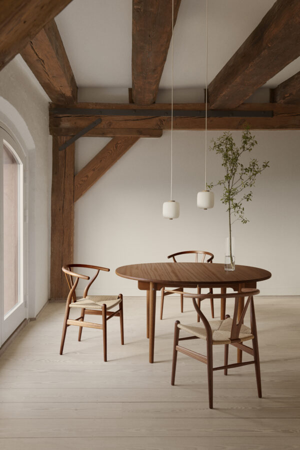Hans J. Wegners CH337 spisebord fra 1962 er lavet i massivt træ. Med sin indbydende form og muligheden for at udvide til 12 pladser, er det ideelt til både hverdag og fest. Designet fremhæves af den elegant forarbejdede elliptiske bordplade og de stilfulde, koniske ben.
