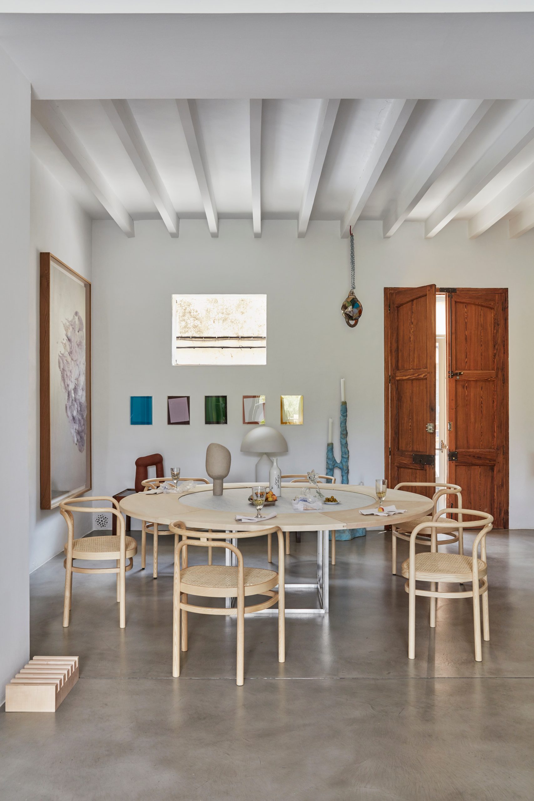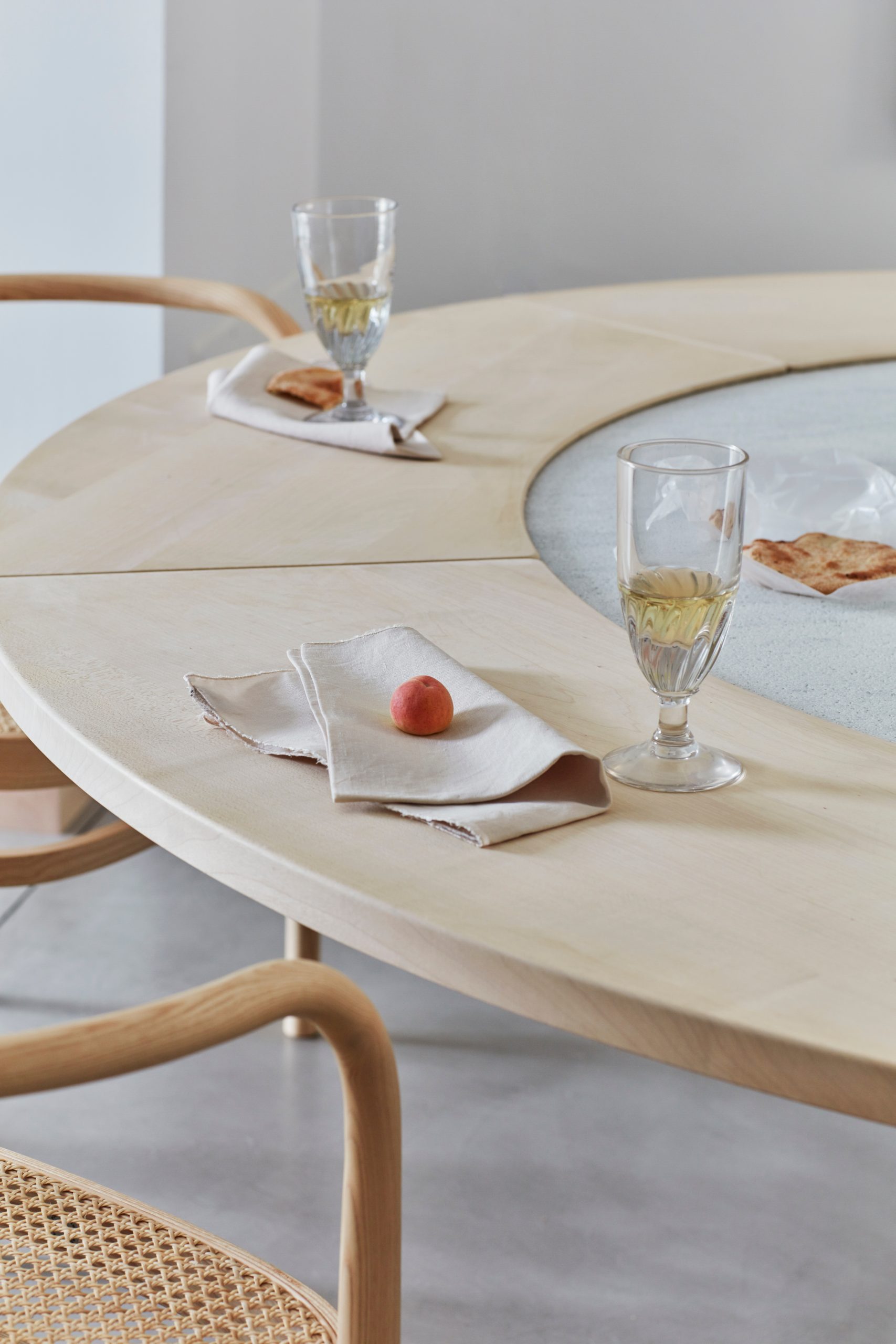 Derudover kan man tilkøbe en tillægsring, PK54A™. Tillægsringen giver en unik mulighed for dem, der ønsker at udvide det runde PK54™ spisebord. Her kombineres sten og træ, det hårde og det bløde, i en harmonisk kontrast. Når tillægspladen i ahorn tilføjes, får bordet et helt nyt udtryk og tilføjer ekstra siddepladser – en smuk og praktisk opgradering af det allerede imponerende design.
