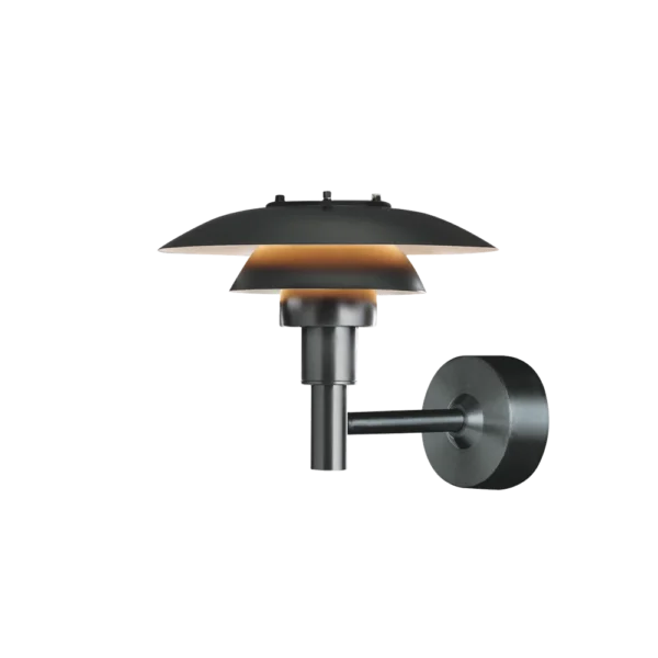 PH 3-2½ Udendørs Væglampe er en moderne fortolkning af dette ikoniske design og bringer PH’s vision om funktionelt og æstetisk belysning ud i det fri. Lampen er en del af 3-skærmsfamilien, som i dag omfatter 30 lamper, heraf tre specielt designet til udendørs brug. Systemet blev skabt som et fleksibelt lyskoncept, der over tid har resulteret i omkring 1000 forskellige modeller, herunder bord-, gulv- og væglamper samt lysekroner. Tidlige lamper blev fremstillet i metal med malede indersider, mens senere versioner i glas kombinerede nedadrettet lys med blid rumbelysning.