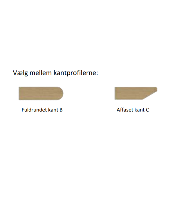 Kantprofil | Vælg mellem 2 kantprofiler: |