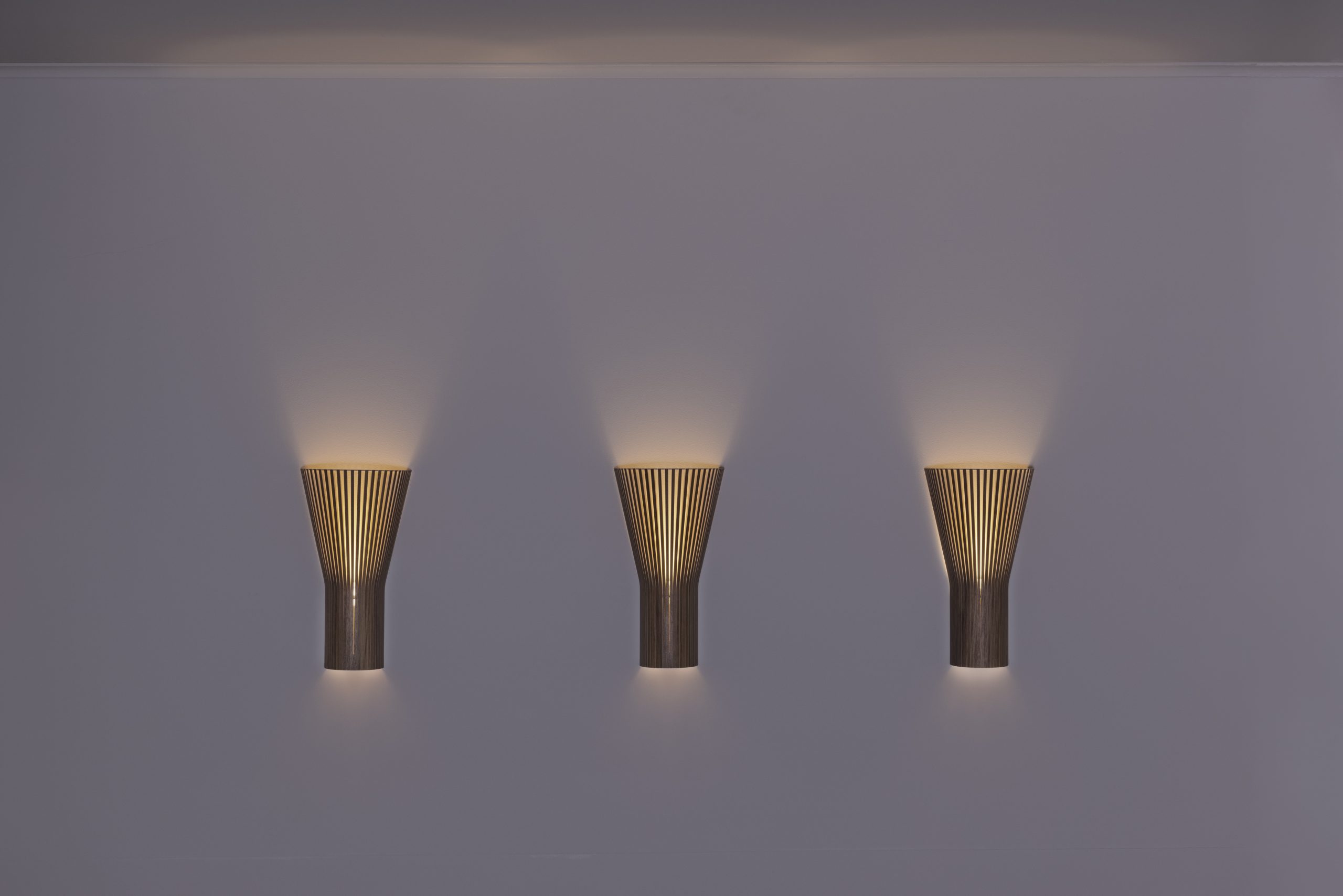 Secto Small 4231 er den kompakte version af den klassiske Secto væglampe – perfekt til at skabe stemning og visuel interesse, selv på små flader. Med sit bløde, opadrettede lys fremhæver den vægge og rum på elegant vis. Lampen fungerer både smukt alene og som en del af en række, hvor den tilføjer rytme og varme.