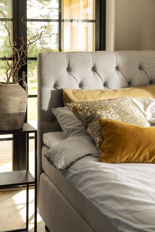 Elite er en sengegavl med indsyede, beklædte knapper, som giver et klassisk og tidløst udtryk. Designet gør den velegnet til mange forskellige indretningsstile. Viking Beds’ sengegavle bidrager til en varm og hyggelig atmosfære i soveværelset og fungerer samtidig som et iøjnefaldende element. Sengegavlen er håndlavet og, ligesom Viking Beds’ senge, betrukket med slidstærke tekstiler i høj kvalitet.