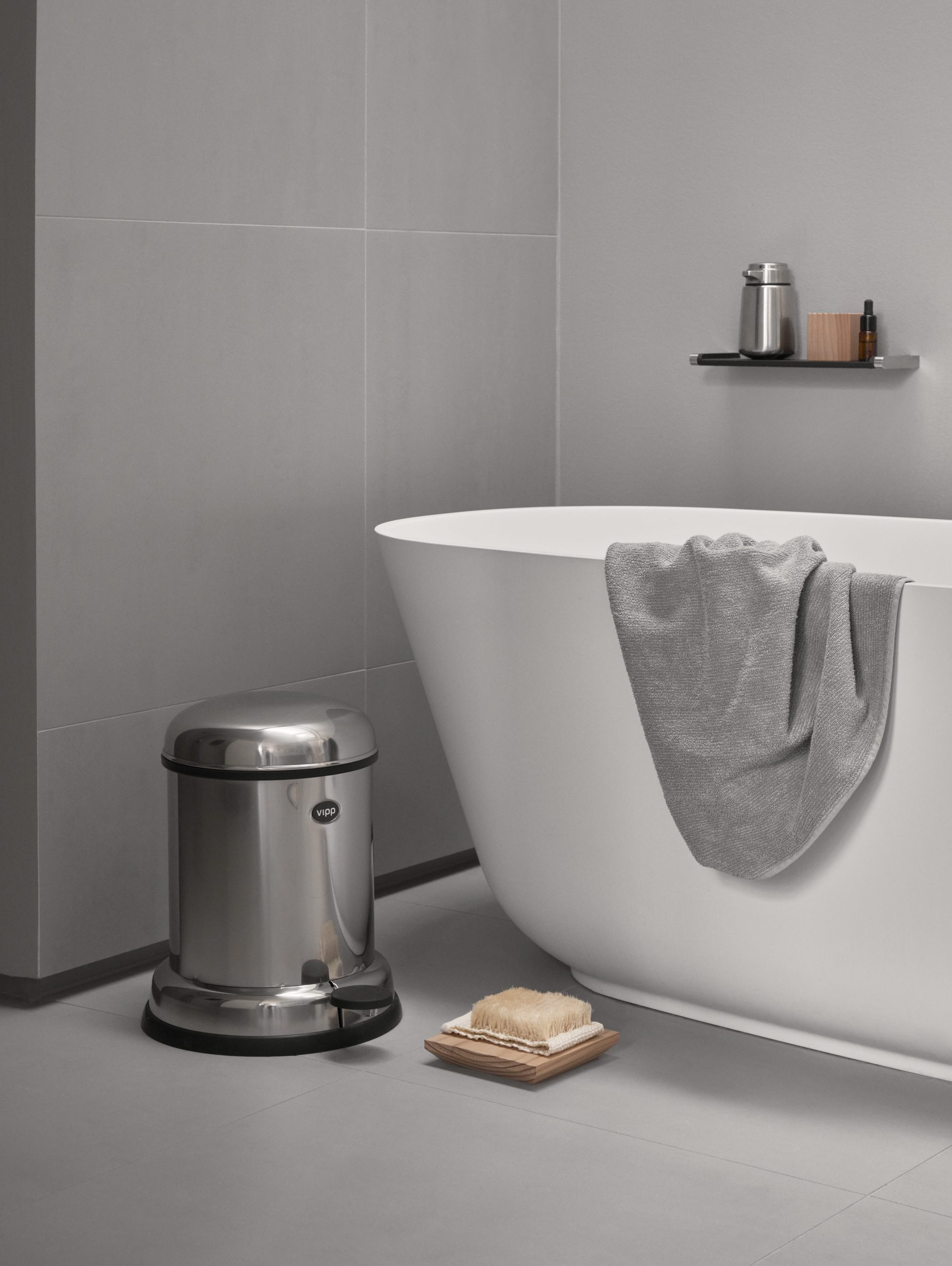 Inspireret af den originale pedalspand fra 1939 er denne mindre model designet ud fra filosofien om, at funktionalitet går forud for form. Med en aftagelig inderspand, et lufttæt låg og et rengøringsvenligt stållåg er Vipp 14 blevet en uundværlig hjælper til badeværelset.